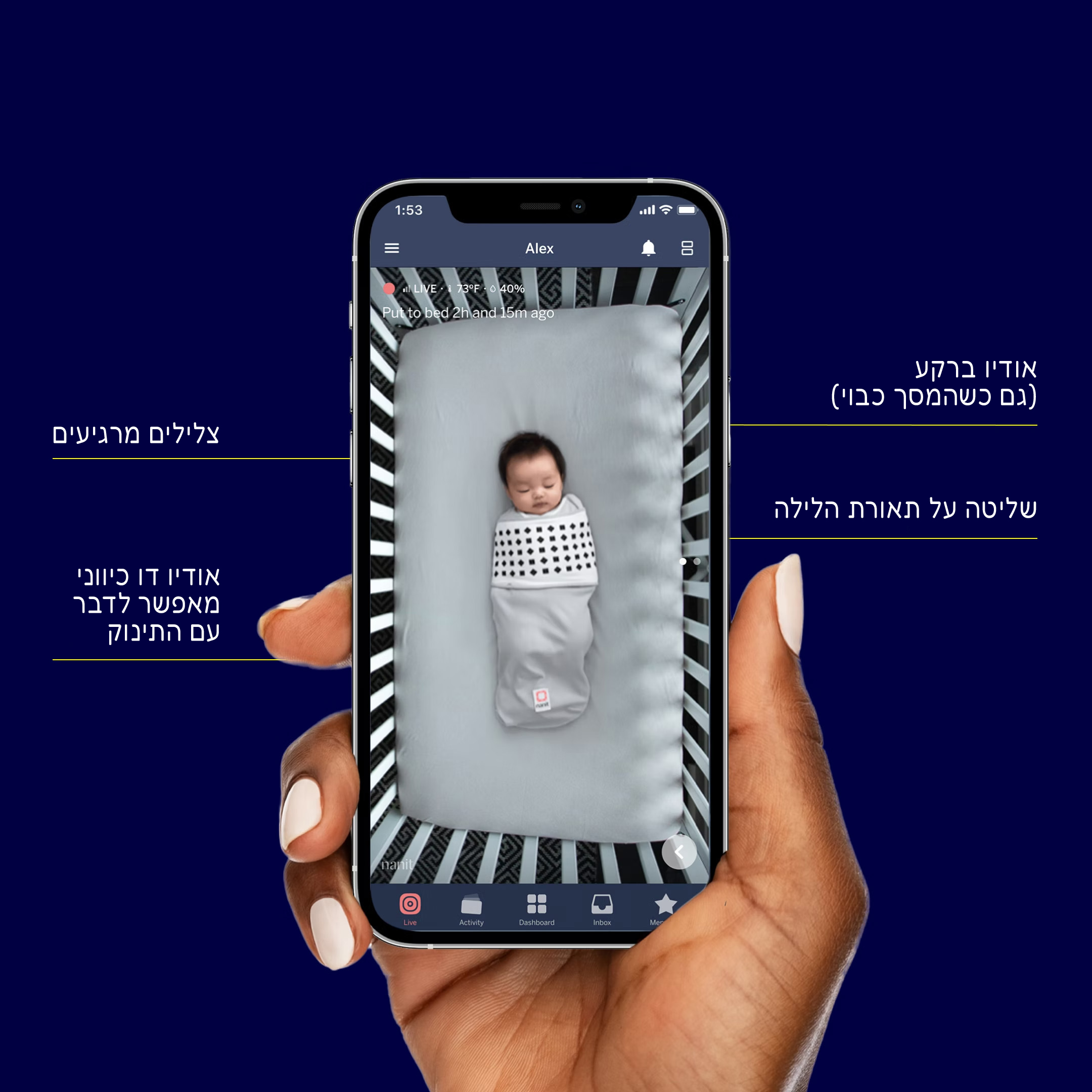 להורים תמונה ברורה של כמעט כל מה שקורה בעריסה ובסביבתה. הטכנולוגיה, המוגנת