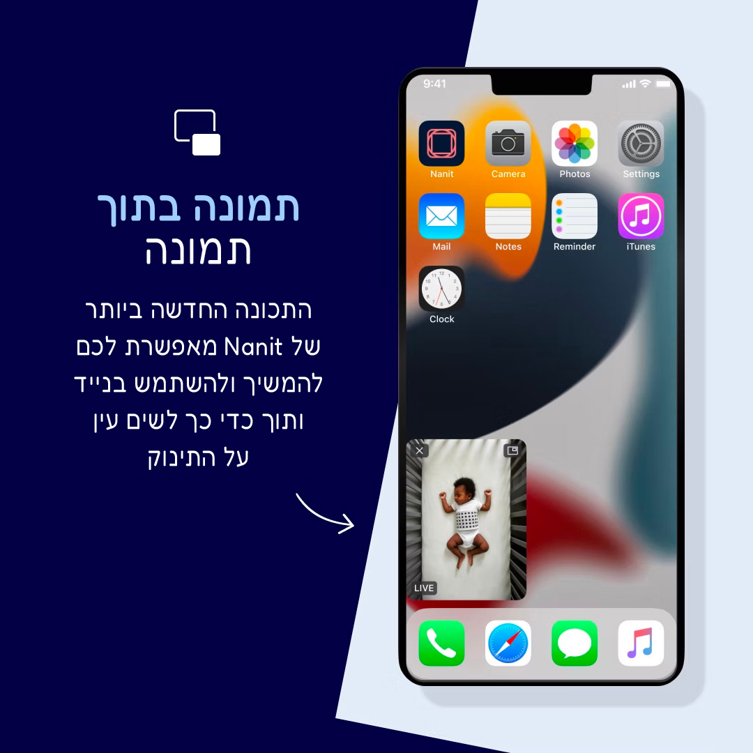 לא. למוניטורים של יחידת הורים יש בדרך כלל טווחים מוגבלים וצגים באיכות נמוכה. צריך גם לזכור ולהטעין אותם כל פעם מחדש. עם Nanit אתם יכולים לצפות בכל האירועים, בשידור חי, בכל המכשירים הקיימים שלכם – סמרטפונים, טאבלטים ומסכי אמזון ואנדרואיד.